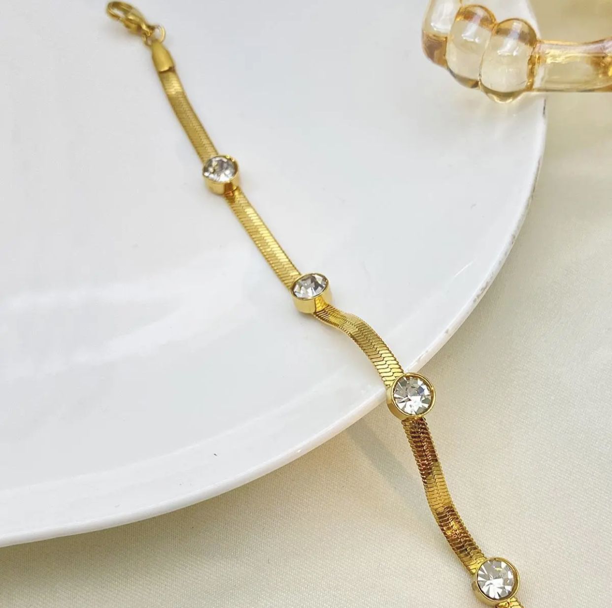 Subtle yet luxurious chain bracelet with clear crystals.